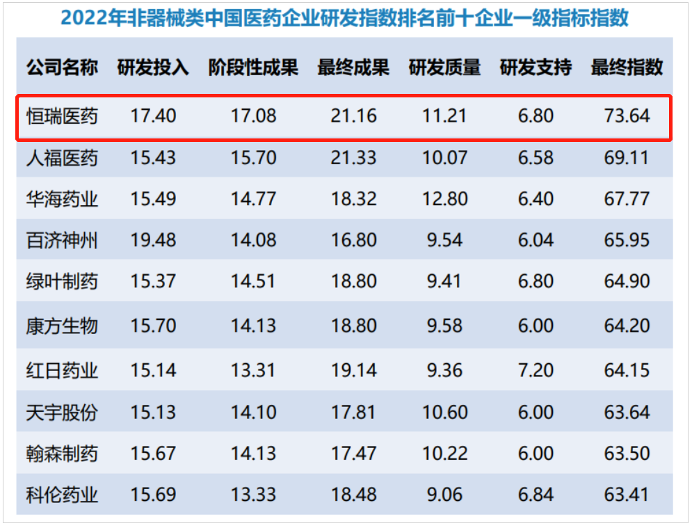 研发量质齐升,Stake医药蝉联非器械类中国医药企业研发指数排名榜首